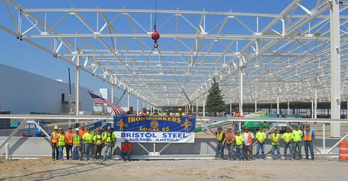 “Bristol Steel fabricated and erected the steel, and size-wise, it was right up there, one of our biggest projects,” said Bristol Supt. Dan Foco of Local 25. “It went fantastic. Not even one problem. Everything fit well, and I give credit to our gang for doing a great job.”