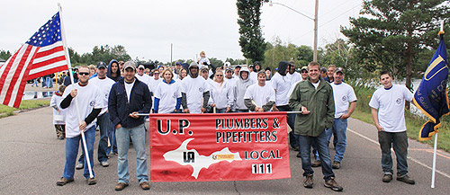 U.P. Plumbers and Pipe Fitters Local 111 members at the Ishpeming parade. Photo by Michael Laitinen