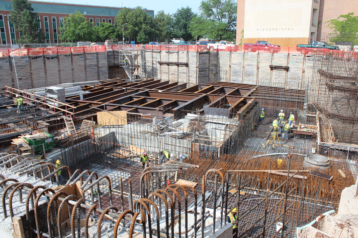 THE ROOF of the Linear Accelerator Tunnel at the Facility for Rare Isotope Beams (FRIB) at Michigan State University will be reinforced with some of the thickest re-bar (foreground) and heaviest wide-flange structural steel sections (background) that the steel industry makes.