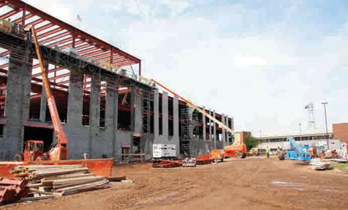 Under construction on the central campus, the new Jamrich Hall will offer 133,000 square feet of new space on three levels for classrooms, lecture halls and faculty offices. Miron Construction is managing the project, and is employing about 75 Hardhats, a number that’s expected to increase to near 120 in the next several weeks.