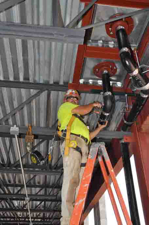SETTING DRAINS at the new Jamrich Hall at NMU is Dan Crisman of Plumbers & Pipe Fitters 111. He’s employed by Dressler Mechanical.