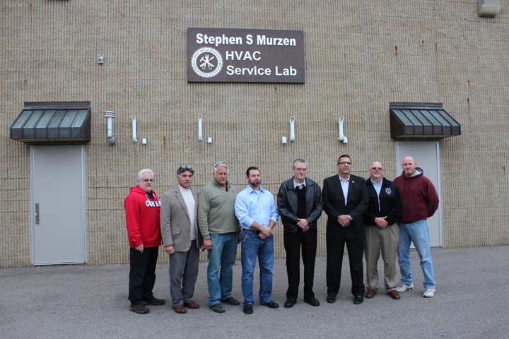 Murzen, who acted as the training director at the school from 1985 to his retirement in 2012, was honored Oct. 30 by the union for his years of service, in the form of the placement of a new sign. Visitors who park in the facility can’t miss the new aluminum sign on the side of the building, designating the “Stephen S. Murzen HVAC Service Lab.”