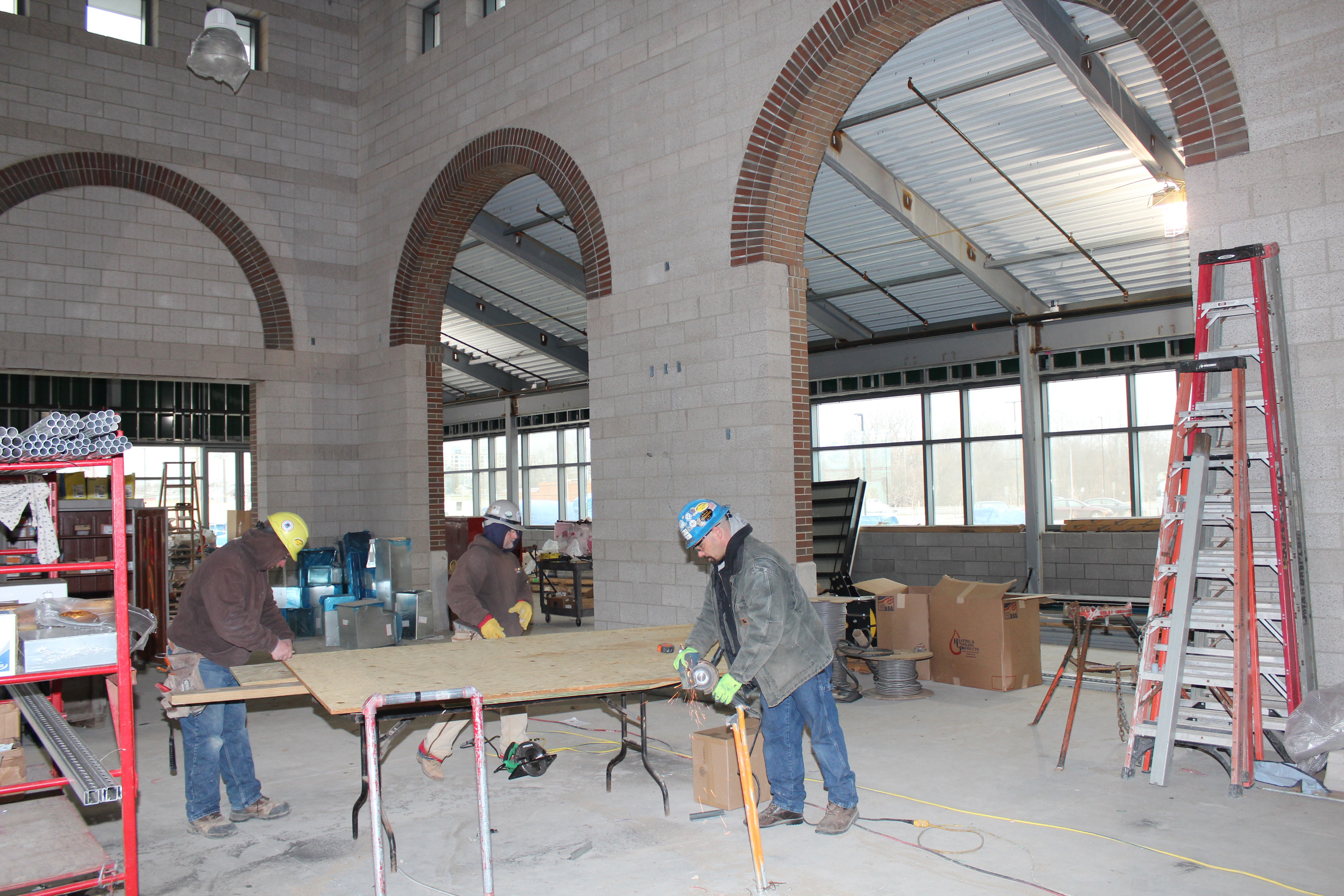 Late last month Hardhats were working on the roof, and inside were installing duct work, electrical, exterior windows and plumbing. The building and site will have a number of green aspects and Leadership in Environmental and Energy Design (LEED) sustainable features, including bicycle racks; energy efficient lighting, geo-thermal heating and cooling, and storm water management features.