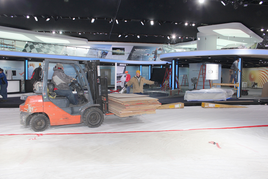 DETROIT – Last year’s North American International Auto Show attracted the largest public crowd in a decade, 795,416 people. The show also brought in 5,000 journalists from around the world and featured the debut of 71 vehicles. This year, expect more of the same. The NAIAS is sponsored by the Detroit Auto Dealers Association, but it’s made possible in large part due to the set-up work by men and women in the building trades and Stagehands unions. Hundreds of workers descend upon Cobo Center every year to set up the show over a three-month period.