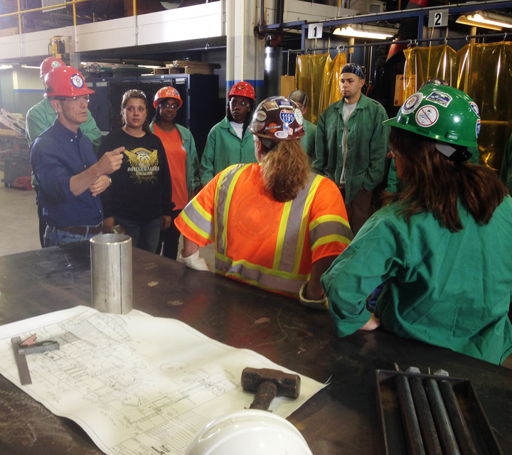 DEMOCRATIC candidate for governor Mark Schauer talks to apprentices on July 30 at Boilermakers Local 169’s Training Center about the importance of voting. Photo by Kathy McComb