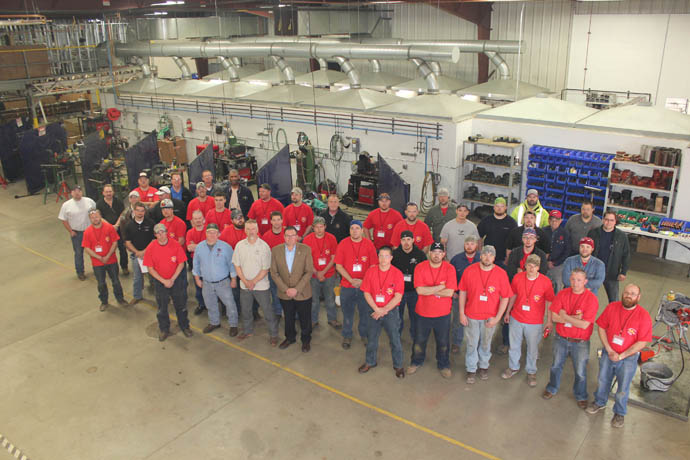 MICHIGAN’S TOP PIPE TRADES apprentices, along with union apprenticeship instructors and union leaders, gather on the floor of Plumbers and Pipe Fitters Local 357’s Training Center in Schoolcraft during a lunch break at the statewide pipe trades contest.