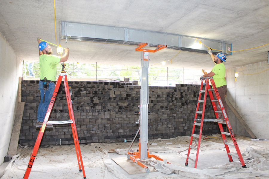 Work began in June 2015 and the project is expected to wrap up in May 2017. About 130 Hardhats were on the project last month, performing interior wall framing, installation of electrical, plumbing, ventilation and other mechanical systems, installing an ice melt system in the plaza, laying the brick facade, and roofing work, among other tasks.