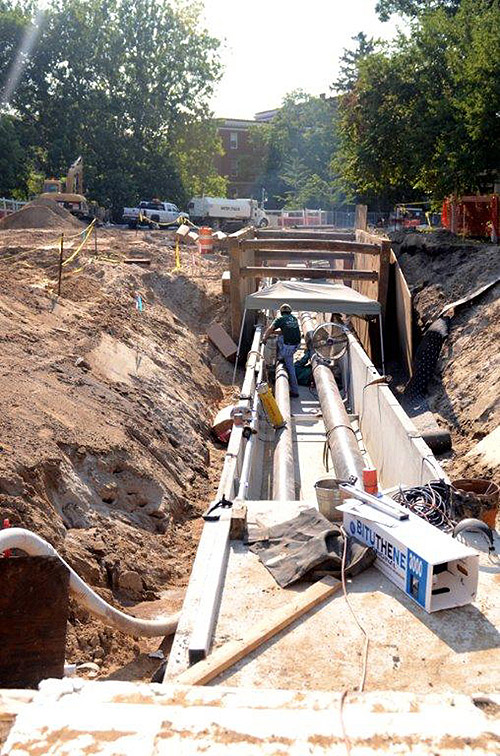 Deteriorated cast-iron water main is also being replaced to increase fireflow capacity and reliability. And, all of the buildings influenced by this zone of construction will be converted to high-pressure steam and pressure-condensate return lines, improving energy efficiency.