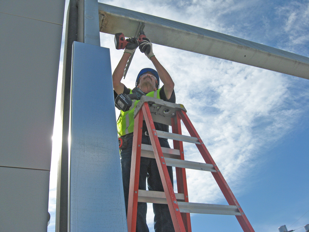 INSTALLING A DUCT SUPPORT at the new Munson cancer center is Sheet Metal Worker Larry Marko of Local 7. He’s employed by Cooke Sheet Metal.
