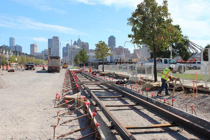 Working through the cold of winter and the heat of summer - and alongside traffic on a busy thoroughfare - Hardhats constructing Detroit's M-1 Rail project on Woodward Avenue have kept the project on track for vehicle testing in late 2016, and passenger operations in early 2017.