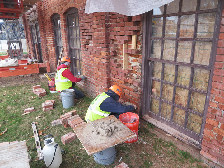 Renovation of the former carriage works has proceeded with Ideal Contracting as the general contractor. Ram Construction Services has been handling the exterior renovation this fall, repairing masonry and shoring up the foundation. New windows and doors will also be installed this winter.