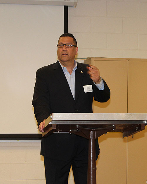 LOCAL 80 Business Manager Mark Saba makes a point while speaking at the open house.