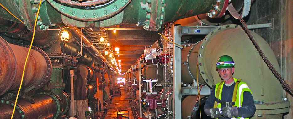 WORKING IN THE aptly named “Pipe Gallery” at the DWSD Springwells Water Treatment Plant in Dearborn is Craig Walton of Plumbers Local 98. He’s employed by FM Sylvan.